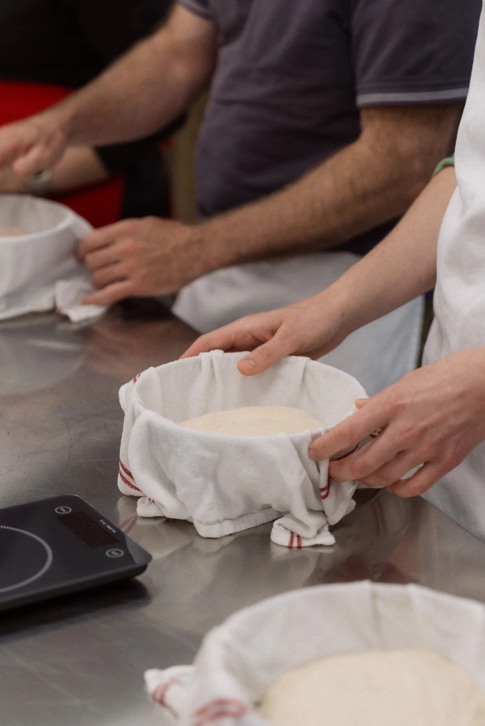 Les différentes étapes de la fabrication du pain au levain : la préparation de la pâte (pétrir ou ne pas pétrir), la fermentation, le façonnage, la cuisson. Afin de pouvoir découvrir toutes les étapes merveilleuses de la fabrication du pain au levain, nous aurons mis a levé la veille de la pâte qui pourra ainsi être cuite pendant l’atelier.